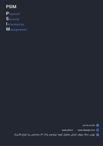 PSIM P hysical S ecurity I nformation M anagement ۰۲۱-۹۱۰۰۲۰۳۲ www.ebte.ir www.farasam.com ﮏﯾﺮﺘﮑﻟا حاﺮﻃ ﺎﻧﺮﺑ نﺎﻤﺘﺧﺎﺳ ،۱۴ کﻼﭘ ،ﻢﻫدزاود ﻪﭼﻮﮐ ،رﺎﯿﻘﺸﻋ نﺎﺑﺎﯿﺧ ،ﺮﻓﻮﻠﯿﻧ ﻪﻠﺤﻣ ،ناﺮﻬﺗ