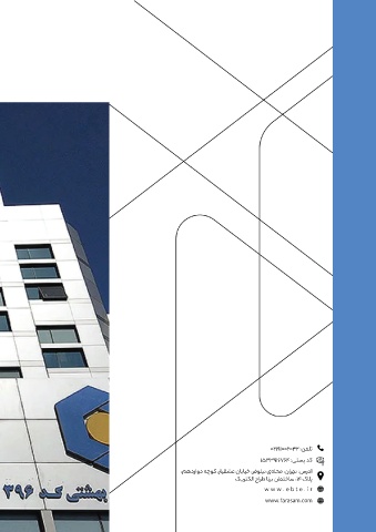 ۰۲۱۹۱۰۰۲۰۳۲ :ﻦﻔﻠﺗ ۱۵۳۳۹۱۶۷۶۴ :ﯽﺘﺴﭘ ﺪﮐ ،ﻢﻫدزاود ﻪﭼﻮﮐ ،رﺎﯿﻘﺸﻋ نﺎﺑﺎﯿﺧ ،ﺮﻓﻮﻠﯿﻧ ی ﻪﻠﺤﻣ ،ناﺮﻬﺗ :سردآ ﮏیﺮﺘﮑﻟا حاﺮﻃ ﺎﻧﺮﺑ نﺎﻤﺘﺧﺎﺳ ،۱۴ کﻼﭘ www.ebte.ir www.farasam.com