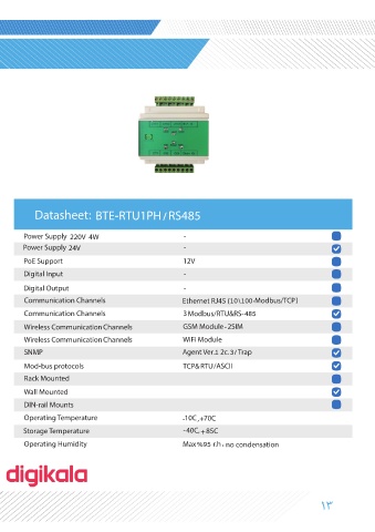 Communication Channels Ethernet RJ 10\100 Modbus TCP (