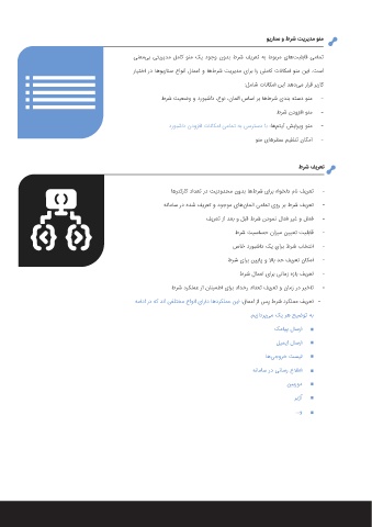 رﺎﯿﺘﺧا رد ﺎﻫ ﻮﯾرﺎﻨﺳ عاﻮﻧا لﺎﻤﻋا و ﺎﻫ طﺮﺷ ﺖﯾﺮﯾﺪﻣ یاﺮﺑ ار ﯽﻠﻣﺎﮐ تﺎﻧﺎﮑﻣا ﻮﻨﻣ ﻦﯾا .ﺖﺳا