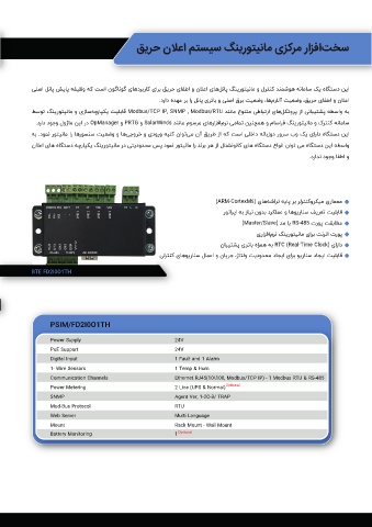 ﻂﺳﻮﺗ ﮓﻨﯾرﻮﺘﯿﻧﺎﻣ و یزﺎﺳ ﻪﭼرﺎﭙﮑﯾ ﺖﯿﻠﺑﺎﻗ Modbus/TCP IP, SNMP , Modbus/RTU ﺪﻨﻧﺎﻣ عﻮﻨﺘﻣ ﯽﻃﺎﺒﺗرا یﺎﻫ ﻞﮑﺗوﺮﭘ زا ﯽﻧﺎﺒﯿﺘﺸﭘ ﻪﻄﺳاو ﻪﺑ